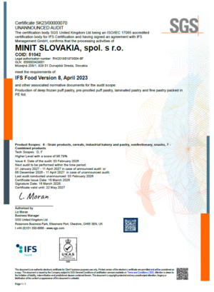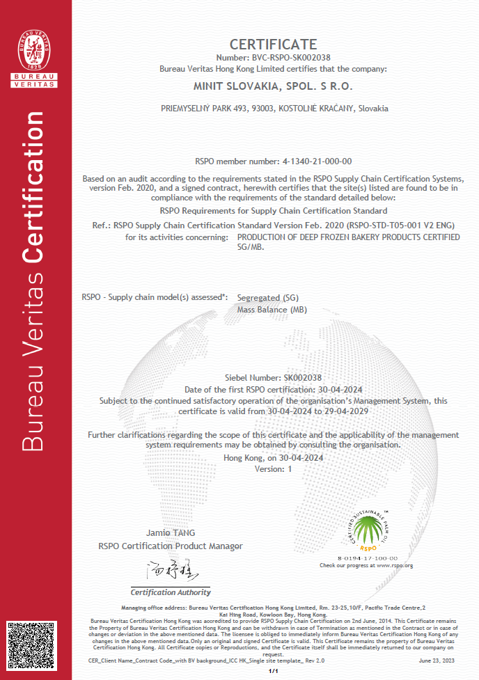 Spoločnosť sa premenovala na MINIT SLOVAKIA spol. s r.o., kde v názve ukrýva výrobu mini koláčikov upečených za pár minút do chrumkava. Zároveň v danom roku sa spustila výroba kváskových výrobkov na vysokokapacitnej linke, čo spoločnosť zaradilo na prvé miesto slovenského dodávateľa mrazených kysnutých výrobkov na slovenský trh.